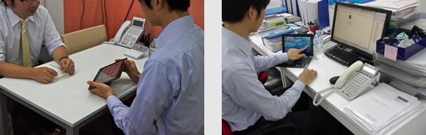 「打ち合わせの時、必要な書類は用意しますが『ASUS Pad TF700T』でサイトや映像などを見せながら説明すると話が早いんです。起動も速いし、指で簡単に操作できるのがいいですね」。加えて自身の作業机でもスケジュールを見たり、資料を探したり、様々な場面で活躍しているという。