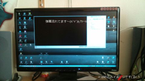 ニコ生のごとく、リアルタイムにテレビ上に弾幕が流れます。
