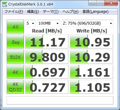 OSのソフトウェアRAID 1なので書き込みが遅いです。
