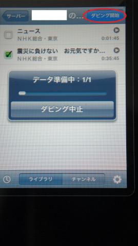 録画したデータが表示された状態で、転送したいデータのチェックボックスをタップしてください。タップ後、ダビング開始を押してください。