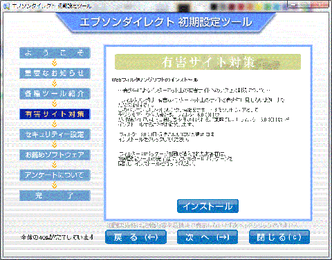 有害サイト対策画面で、インストールするか否かを設定します。