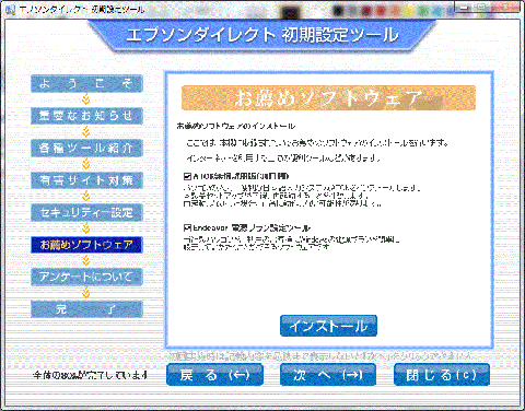 お薦めソフトウェア画面で、必要なソフトをインストールします。