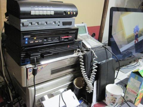 2.地デジチューナーとCRT、外付けHDDをつなぐ。TVが映った!