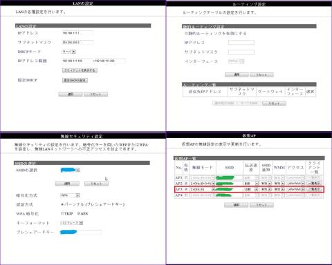 セキュリティ設定はSSID、WPA、AES、パスワードくらいでほかはいじっていません