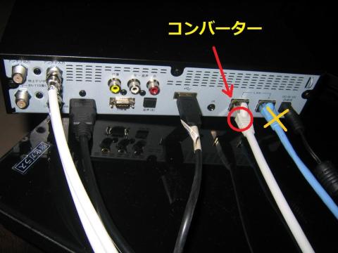 LAN端子は一方にはテレビのLAN端子に、もう一方はコンバーターのLAN端子につなぎます