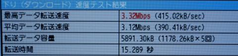 3.32Mbpsです。こちらも遅いです。