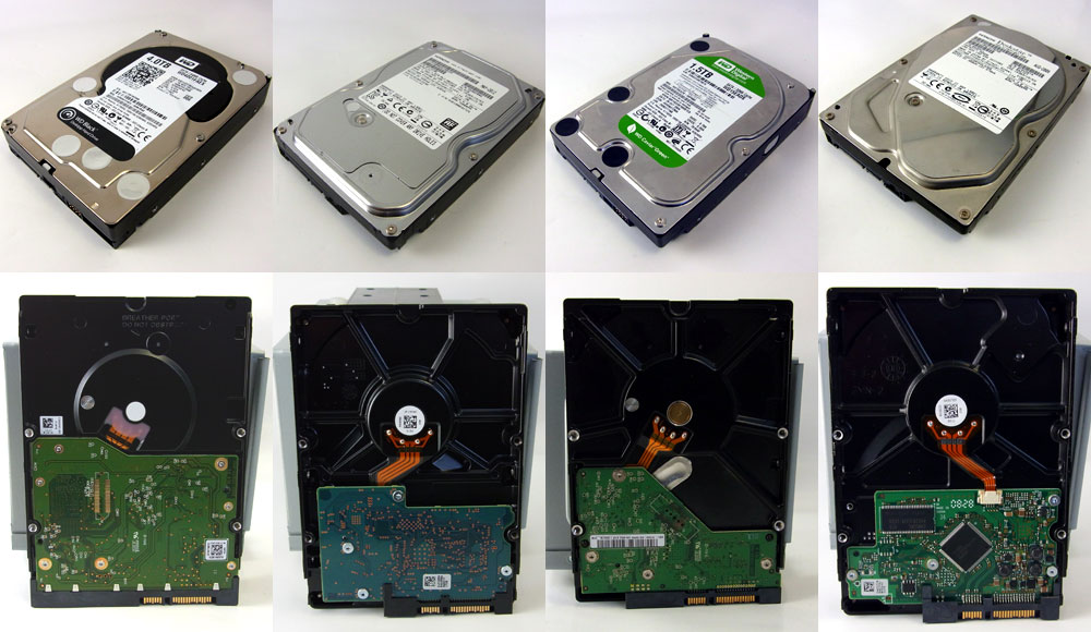 画面左上がWD Black 4TB、右上が7k1000.D 1TB、左下がCaviar Green 1.5TB、右下がP7K500 320GBとなる。ここの埋め込みでは画面が小さすぎて文字が見えないので、拡大表示やYOUTUBEで直接開いたほうがオススメだ。