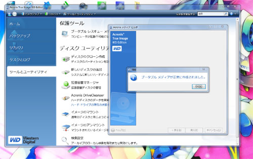 但しMBRでブートしているWindows上からではクローン時の変換ができない。まずはAcronis True Image WD Editionのブータブルメディア(CD-RでOK)を作成して、そこからブートする。