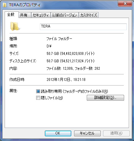 TERAのクライアント容量を上記の通り50GBオーバーと書いており、実際私の家の2台のPCではほぼ同じ50GBの容量だったのですが、他の方から37GB程度というご報告を頂いたのでクライアント再インストールを行ったところ、30GB弱に収まりました。