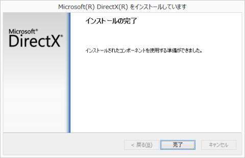 DirectXのセットアップを行い、「完了」を押します。※状況によってはでないかもしれません