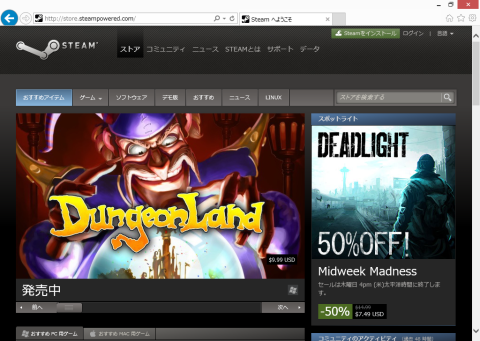 Steam(Steam - Wikipedia)のゲームなので、まずはSteamをインストールします。