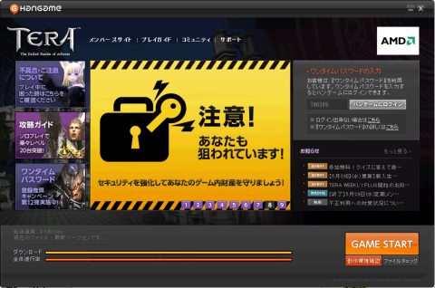 それでは早速ゲームにログインしてみよう。ハンゲーム(TERA)だ。