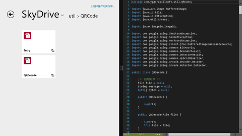 実は Surface2 は、標準でエディタが入っていません(Notepadはありますが)。そこでエディタとしてWindowsストアから Code Writer を入れました。エディタがきれいに色分けをしてくれるし、Surface2 は解像度も高いので、一覧性は断然良くなりました。
