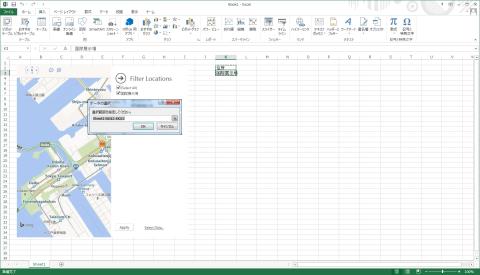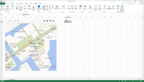 もちろん、WebのBing Mapの用に動かすことも出来るので、わざわざセルを設定しなくても地図を表示することが出来ます。新年会の地図作成もばっちりです。地図の(C)表記は、TOPのアメリカ大陸の時はNokiaでしたが、日本はMicrosoftとZENRINと表示されます。文字情報をMicrosoftで追加したので、英語と日本語が混在しているようです。設定できるようになるとよいのですが。