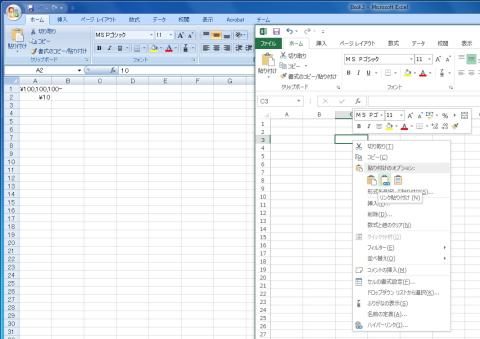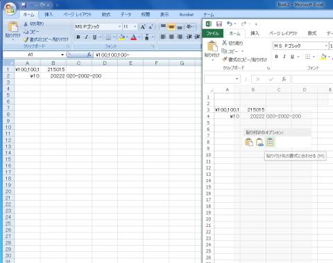 しかも、リンク貼り付けの時はメニューが表示されていますが、値を貼り付けるときはメニューが薄くなって表が見えるように。