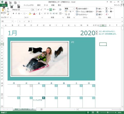テンプレートのカレンダーの数が大変多く、"任意"とキーワードがないカレンダーでも設定が出来るカレンダーが多くなっています。今回は、"写真"をキーワードに設定して写真を入れられる「家族写真カレンダー」テンプレートを選択します。