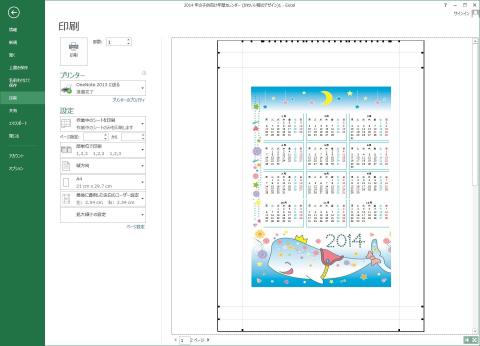 Office2013では、印刷メニューに入るとプレビューが表示されます。紙の設定は画面左側にすべて表示され、変更と同時にプレビューにも反映されます。はがきと写真用紙、どちらでちょうど入るか、なんて見るときもすぐにわかります。プリンタの変更に応じて余白なども反映されます。