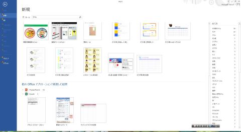 ところが、Office2013では、起動すると、いきなり「これでもか」と思う位のテンプレートが表示されます。