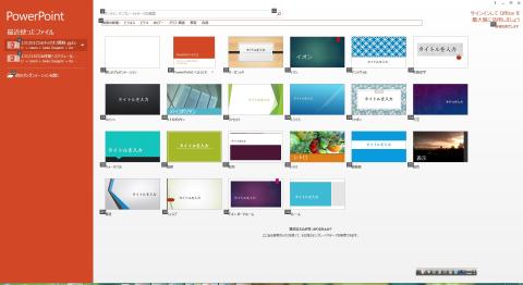 あとは、PowerPointの進化でしょうか。見出し入れて文字入れて、適当にプレゼンの時に使うソフトくらいに思っていたのですが、テンプレートを開けてみると、気になるものがありました。