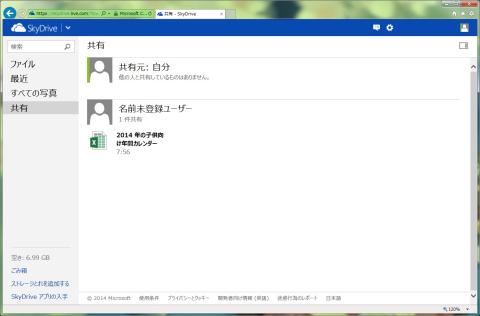 つまり、Windows8.1とそれ以前のOSでは、少し見え方が違います。このあたりはOSにSkyDriveを統合したメリットといえるでしょう。一方で、Windows7では表示されている他のユーザーから共有されたアイテムがWindows8.1のExplorerでは見えません。設定の問題なのか、そういうものなのかは、今のところわかっていません。