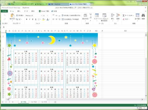 サンプルの予定を消して、予定を追加するとカレンダーの完成です。印刷すると12ページにきちんと分割されます。