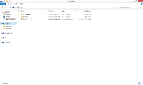 Windows8.1をMicrosoftアカウントで使用するとWindows8.1上の特定のフォルダ(既定ではC:\Users\UserName\SkyDrive)がExpolorer上から"SkyDrive"のフォルダとして見えます。