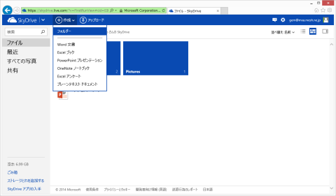 SkyDriveから新規にOfficeファイルを作成することも可能です。