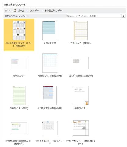 Office2010では、年号が指定できるカレンダーは地味なデザインのカレンダーがほとんどでした。