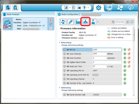 マイコンボードへ書き込むボタンをクリック。