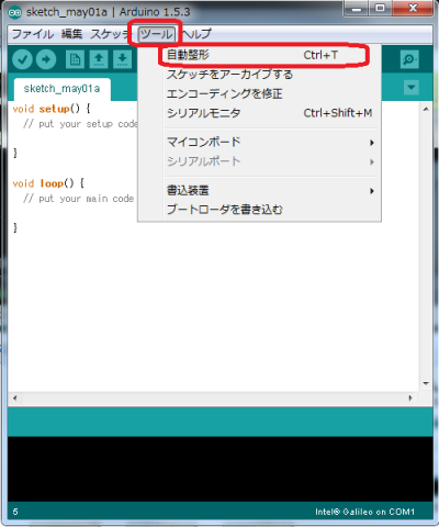 Galileo IDEのシリアルモニタボタンをクリック