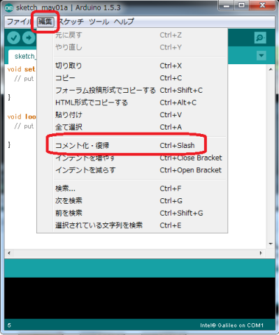 早速プログラミング・・・と行きたいところですが、Galileo IDEにはshiftOutという、74HC595を使う上で重要な関数が実装されてません。