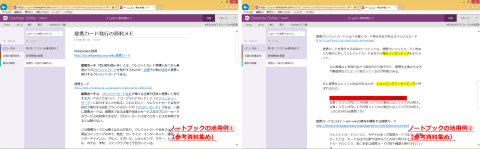 続いて、参考資料も集めなければと思い、「提携カード」等のキーワードでネット検索を始めました(カード事業のような重大な案件をネットで調べるのもアレですが)。いやはや、ノートブック(OneNote)はとても便利ですね。次々と必要な情報を貼り付けて、チーム内で使う簡単な資料をまとめることができました(今回はテキストベースですが、Webページの体裁を可能なかぎりそのまま貼り付けることもできます)。