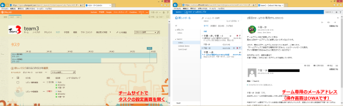 チームサイトには、他にもチームのタスクやスケジュールを管理するオプションが備わっており、メンバーの共通意識を高めるうえで十分な配慮がなされていると思います。また、チームサイト専用のメールアドレスを扱うこともできます。今回は上手く活用できませんでしたが、例えば一時的に結成されたプロジェクトチームの代表窓口として使えるかも知れません。