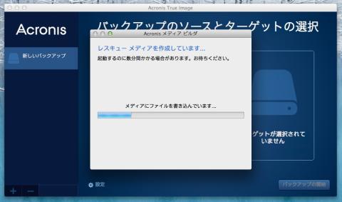 メニューの「リカバリ」から「リカバリする」を選ぶと「レスキューメディア」を作成してくださいと言ってきます。DVDに書き込むと思って空のメディアを挿入し作成しようと思いましたが、光学メディアには作成できないんです。昔はDVDでしたが、このバージョンはUSBメディアしか対応してないみたいです。手持ちの空のUSBがあってよかった。これきっと昔の「Acronis True Image」を知っている人は盲点でしょうね。作成の方は指示に従って、簡単に出来ました。