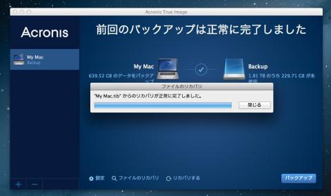 とゆうわけで、システム全体の復元は出来ませんでしたが簡単な操作でHDDをバックアップできてスケジューリングも出来る「Acronis True Image for Mac」の基本的な使い方でした。