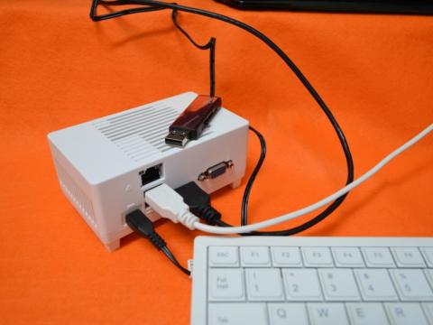 2、LIVAにモニターとキーボードと電源をつなげます。