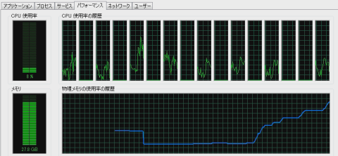 今回は換装前後共合計32GBのメモリを実装している訳なのだが、さすがに32GBとなるとメモリ大食いの代名詞だったPhotoshopでさえ単体でメモリ不足を起こすのは難しい。