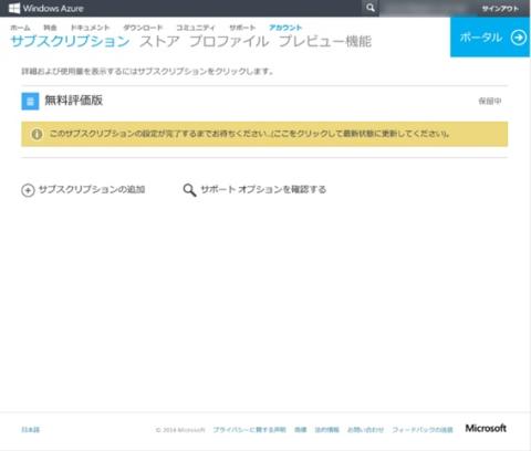 「!」の部分のリンクをクリックするとサブスクリプションの設定が完了していれば次の画面へ進みます。