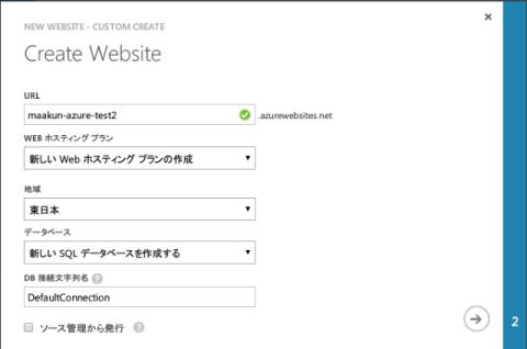 サーバーログイン名とパスワードは、SQLデータベースにアクセスするユーザ名とパスワードなので適宜入力してください。