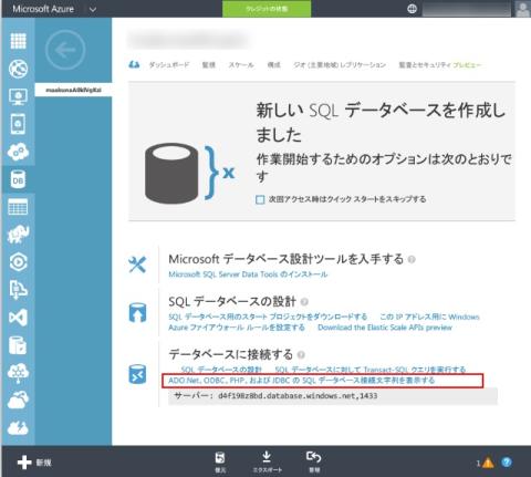 左メニューより「SQLデータベース」を選択し、右側に出てくる作成したデータベースの名前をクリックします。