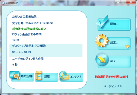 次にPCの起動に要する時間の比較、これもよく比較に使用している測定ツールの