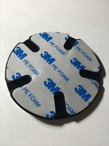 吸盤用台座はこちら。強い湾曲面にこれをつけることで、吸盤を安定して使うことができるようになります。粘着テープは安心の3M製。