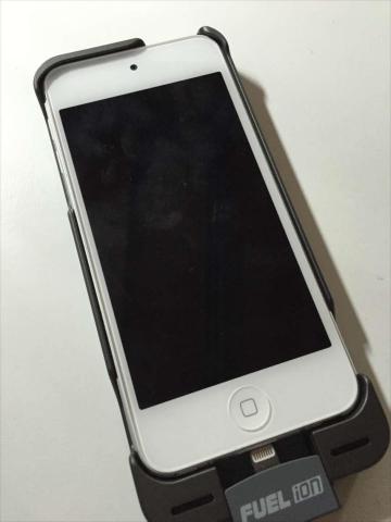 そうしてできたものをFUEL iONに装着し、iPod touch 5thを装着すると、ピッタリハマりました。