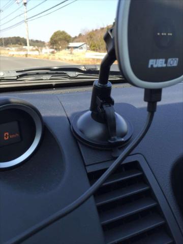 ダッシュボードがゆるめですが湾曲しているので、そこに装着します。僅かな湾曲なら吸盤用台座を使う必要はないかもしれません。