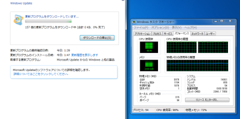 おそらく、Windows UpdateでCPU使用率を持って行かれたことが原因かと思われる。