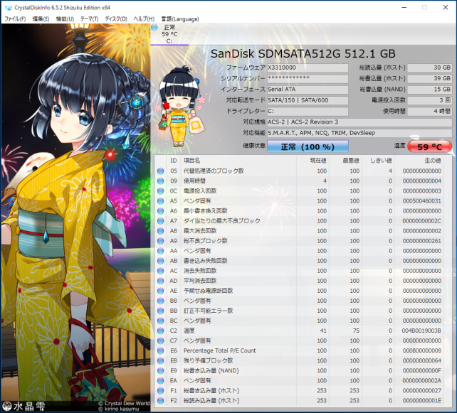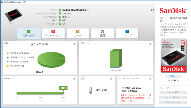 SanDisk Dashboard アプリは SDMSATA-512G-G25 を認識していますね。これならSSDのファームウェアアップデートも対応できそうです。が、相変わらず SEM64G は認識していません。