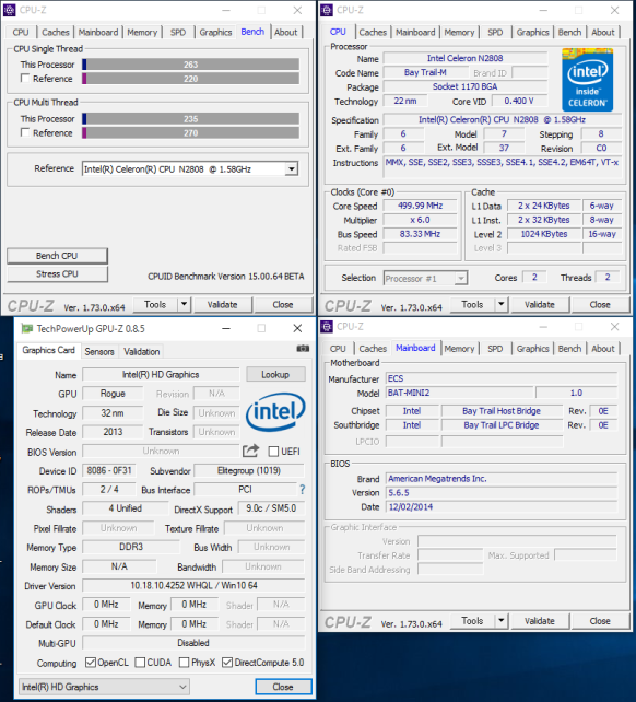 このN2808は一見、一般的なPCに使われているCPUと比較するとスペック的には貧弱かもしれませんが、実はハイ・ワットパフォーマンスなCPUこそIntelが究極的に目指している方向性の一つであり、実践していると今回のレビューを作成していて感じました(徹夜明けでハイになってるかも)