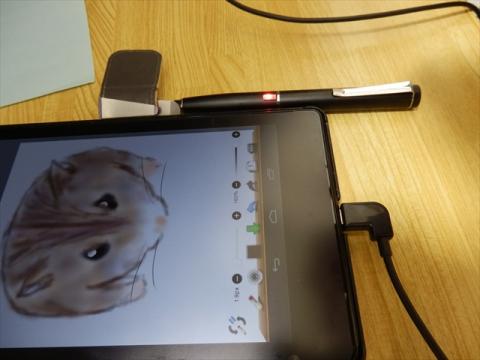 画面にタッチすると、LEDが少し強く光る(ちらついているだけ?)のでペン先からタッチパネルなどの表面に通電しているかどうかが分かる機能なのかな。