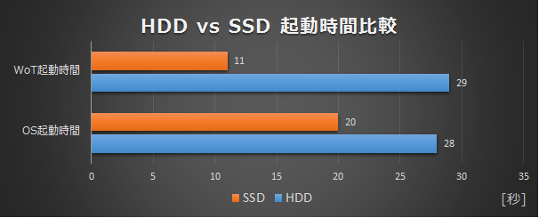 SSDのメリットはきわめて大きく、World of Tanksの起動に至っては約1/3まで短縮される結果となった。