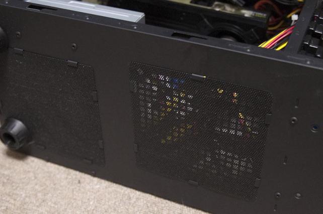 フロントを一体化パネルで覆った静音重視設計なケースは総じて吸気が不足する、いわゆる「窒息状態」になりがちだが、これだけ大きな吸気口が側面に設けられていれば、吸気不足に陥る心配は無いと言える。
